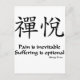 Kanji för Zen joy med buddhistiska talesättet Zen: "Smärta är oundvikligt, lidande är frivilligt."