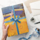 Förhöj din presentgiving med detta premiumpresentpapper med en fängslande blandning av japansk blomsterkonst och retro geometrisk design. Det intrikata körsbärsblomstrande trädet och den gyllene solnedgångs bakgrunden med ränder och koncentriska cirklar skapar en sofistikerad och konstnärlig presentation för alla tillfällen. Perfekt för födelsedagar, bröllop eller högtider, detta högkvalitativa presentpapper erbjuder en unik zen-estetik som sticker ut under trädet eller på presentbordet. Den varma ockra- och blå färgpaletten säkerställer att dina presenter ser lika vackra ut på utsidan som de är på insidan.