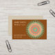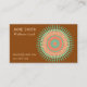 Ett affärskort av snyggt, professionell som lämpar sig för all frilansverksamhet, Hälsa Coach eller ockupation. Denna vackra design har en färgstark indisk inspirerad mandala i persikor och peppermint mot en brun bakgrund. Detta moderna affärskort är helt och hållet anpassade att inkludera dina egna personuppgifter samt kvalifikationer och information om ditt företag.