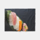 This soft fleece blanket features a refined lineup of sushi delicately arranged on a bamboo leaf, captured with minimalist elegance against a deep black background. From maguro to salmon and negitoro, each piece radiates freshness and craftsmanship.