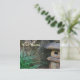 Stor profilerar knubbiget kortet med en zenpåverkan: elfenbentext på en japansk trava-sten lykta och testar av grönska, mot en stenbakgrund. Fotografi vid Minerva blom.