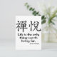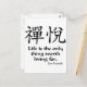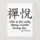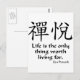 Kanji för Zenglädje med den buddistiska proverben för zenen, "liv är det värda uppehället för den enda saken för".