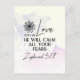 Vykort med inspirerande citattecken visar en modern abstrakt design med lavender- och rosa-penseldrag och stänk. Den innehåller en del av en hoppingivande bibel Verse Zephaniah 3:17: "Med hans kärlek kommer han att lugn all din rädsla." Hälsning, bön kan vara personlig eller raderas för ett handskrivet meddelande.