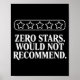 Zero Stars Would Not Recommend Humor Funny Sarcast Poster