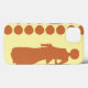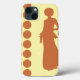 Polka Dot mönster i en färg palett med varm neutralt parade på en gräddfil i fält med 1970 års mode-silhuett.