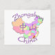 Zhongshan i provinsen Guangdong på ett färgat karta i China innehåller de kinesiska symbolerna för "Zhongshan" och dess placering är märkt på karta med ett hjärta och flagga. En vacker, unik adoptionsgåva till Chinan! Anpassa den med ett namn eller foto också! Designad av Hendrika of RedThreadMaps.com