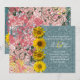 Dessa roliga, bekymmersfria bröllopsinbjudningar har en bohemisk udda-och-ändar-anda med silverglans och solrosor. Det blå damaskusmönstret kontrasterar fint mot rosén på överdraget, men om du föredrar en annan damaskusfärg, klicka på anpassa och ändra bakgrunden till den du föredrar (den kommer fortfarande att ha damaskusmönstret).