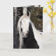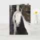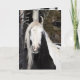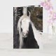 En zigenar-Vanner-häst tittar ut i en skog i Alberta på vintern.