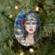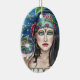 En härlig mörk haired zigenare med grönt synar innehav som en kristallkula omgav vid löv och en natthimmel.