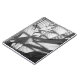Svart och vit återgivning av ljus och mörk mönster, som är gjutet på en blandning av växter.