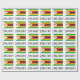 Zimbabwes Flagga har sju rand. En är svart och i mitten. Två är röda och ligger högst upp och grund i det svarta rand. Gult ränder gräns de röda, med grönt som gränsar till varje gult rand. En vit triangel visar på den lämnat med en röd stjärna och en gult zimbabwisk fågel. I detta utkast visas flagga med ord ZIMBABWE under i svart brev. Coolan på den här inslagningen är papper.
