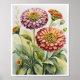 Zinnia Flowers Handmade Vatten Färg Wall Poster