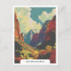 Upptäck de fantastiska landskapen i Zion National Park i Utah med det här vykortet för vintage som visar dess stora röda sten-formationer, djupa kanyoner och vibrerande ökenflora. Zion är känt för sina otroliga vandringsvägar, inklusive den ikoniska Änglar Landing och The Narrows, och erbjuder utomhusentusiaster andningsvyer och äventyr i ett unikt geologiskt underland. Det här vykortet i stil fångar Zions innersta väsen och uppmanar dig att utforska naturskönheten och de spännande upplevelser som denna fantastiska nationalpark har att erbjuda