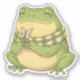 Adorable illustration of Zochi the cozy frog being gentle, surrounded by mushrooms, lily pads, and soft warm tones. Perfect for nature lovers and cozy aesthetic fans.