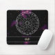 En elegant och modern zodiakmatematisk musknapp med en astrologisk kalender med djup rymdbakgrund och vacker lila och rosa nebuli. I zodiakcirkeln visas alla 12 stjärntecknets symboler och konstellationer. En astrologisk temagåva som är ett tillägg till din hemdekanter i perfekten. Det är enkelt att anpassa sig, med utrymme för ett monogram och namn för att lägga till den unika beröringen.