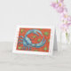 Cancer, krabban, går på en strand täckt med stjärnor. Vatten, 22-23 juni (det kan finnas en variation i data). Hälsning-kort med orange, blått och gult anpassade på framsidan så att du kan anpassa dig med din egen text, bilder och dina idéer och "Grattis på födelsedagen" skriven inuti. Jess Perrys ursprungliga färgpenna och metalliska bläck teckning.