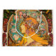 Alphonse Mucha (24 juli 1860-14 juli 1939) var en tjeckisk målare, illustratör och grafisk konstnär som bodde i Paris under Art nouveau-perioden och var bäst känd för sina distinkta stiliserade och dekorativa teaterala poster, särskilt de som tillhör Sarah Bernhardt. Han tog fram illustrationer, annonser, dekorativa paneler och formgivningar, som blev ett av periodens mest kända bilder. Under den andra delen av sin karriär, vid 43 års ålder, återvände han till sitt hemland Bohemia-Moravia-regionen i Österrike och ägnade sig åt att måla en serie av 20 monumentala canvaser, kända som "Slav Epic", som skildrade världshistorien för alla slaviska folk, som han målade upp mellan 1912 och 1926. 1928, på tioårsdagen av Tjeckoslovakiens självständighet, presenterade han serien för den tjeckiska nationen. Han ansåg att det var hans viktigaste arbete. Den är nu på visning i Prag. citat:Wikipedia