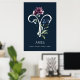 Modern, blommigt av Aries Zodiac-symbolen, som skildrar ett Rams böjda horn.