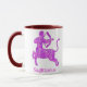 Mugg i symbolen för det astrologiska sol-tecknet Sagittarius, i ett mönster av ametyst, lila och magenta av plommon