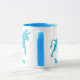 Mugg i symbolen för det astrologiska sol-tecknet Taurus, i ett ryggmärg mönster i himlar blå och akvamarin