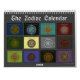Varje sida av denna kalender presenterar en themed mandala för zodiac med olika gemstones som omges av symbolet för underteckna, konstellationen och det alchemical symbolet för inslag bland filigree och, väver.