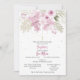 Rosa och salvia-färgade akvarellblommor pryder framsidan av denna inbjudan. Accenterad med ett enkelt hängande kors. Baksidan av kortet är salviafärgad med vita prickar och en extra grupp blommor. Del av "Zoe-kollektionen".