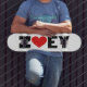 Zoey i namn med brev ersattes med ett rött kärlek-hjärta. Färg kan ändras.