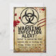 Ange karantänens zon! Denna Zombie Apocalypse-födelsedag | Halloween Biohazard Survival Party Invation blandar utbrottslarm, giftiga symboler och odöda humor. Underbar för barn, tonåringar eller vuxnor som vill ha en unik Halloween-temad födelsedag. Anpassa med namn, ålder, datum och plats. Matchning av biotoriska party-förråd för en komplett överlevnadsmängd.