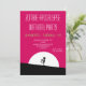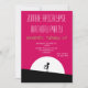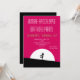 En zombie apokalyps födelsedagsfest inbjudan. Rosa och svart djärv livlig färgskala. En cool zombie siluett med armarna utsträckta på jakt efter hjärnor. En stor vit måne lyser upp från bakom.