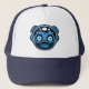 Vector tecknad illustration av en zombiastronaut med stort öga med en hjälm i rymden med ett spruckt glasskydd i blå nyans. Märkre: astronaut, kosmonaut, helmet, zombie, rymd, rymdeman, monster, kadet, lik, död