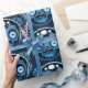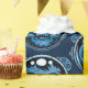 Vector tecknad illustration av en zombiastronaut med stort öga med en hjälm i rymden med ett spruckt glasskydd i blå nyans. Märkre: astronaut, kosmonaut, helmet, zombie, rymd, rymdeman, monster, kadet, lik, död