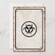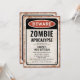 Vintage inbjudan för en zombie-apokalyps tema-fest med en rostig VARNING-skylt, biosymbol och skruvar.
