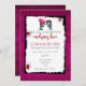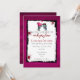 Bröllopinbjudan med en söt illustration av en tjej och kille zombie, helt i kärlek som når ut mot varandra med ett rosa hjärta som flyger över deras huvuden. Tur och förtjusande men också läcker, avskyvärd och roligt! Ange färgadens bakgrund för mörk. Röda färgfläckar och färgstänk omger din bröllopsinbjudning. Innehåller ord: "gå med oss när vi firar vårt fördärvande kärlek", passa på en zombiemäklad bröllopsinbjudan.