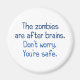 Underbar gåva till zombie älskare och ett sätt att säga till någon att de är dumma! Zombierna är ute efter hjärnor. Oroa dig inte. Du är säker."