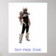 Futuristiskans säkerhetsvakt står hög med slagordet "Nöt-fri zon"