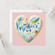 Überrasche deine Mama mit einer liebevoll gestalteten Muttertagskarte, die von Herzen kommt! Diese zauberhafte Karte zeigt ein großes Herz im Mittelpunkt, das mit dem handschriftlichen Schriftzug "Happy Mother’s Day" verziert ist – stilvoll in moderner Handlettering-Optik. Umrahmt wird das Herz von zarten Blättern und bunten Punkten in fröhlichen Farben, die der Karte eine verspielte, frische Ausstrahlung verleihen.