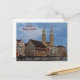 Upptäck Zürichs charm med det här pikturesque-vykortet med stadens ikoniska vattenfront. Historiskt byggnad och det stora Grossmünster torn skapar en tidlös scen, perfekt för delning eller insamling.